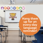Icons are printed on high gloss, durable paper stock, with double UV coating to increase durability. They are die cut into 10″ circles, perfect for classroom and therapy room display.