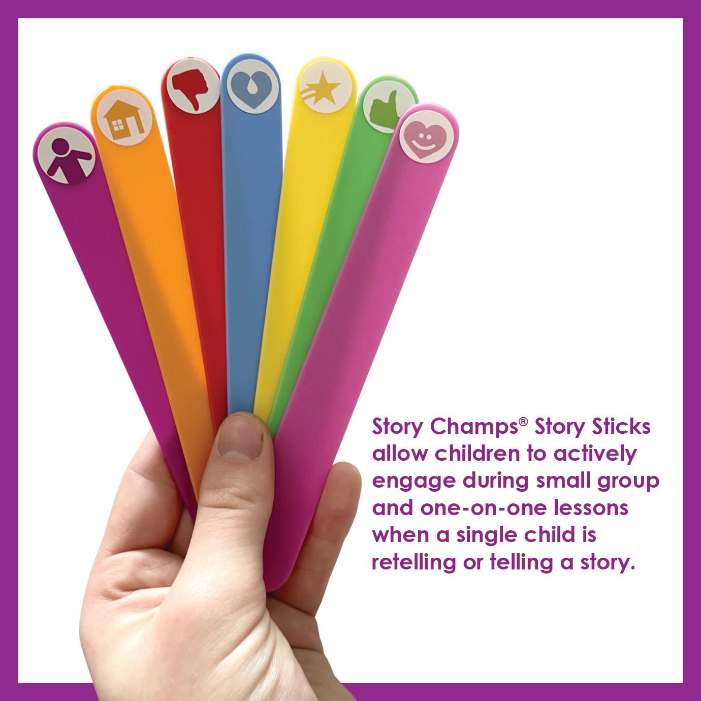 We are excited to offer replacement story sticks for your Story Champs® kit. These sticks are are made of a flexible plastic, and are nearly indestructible! Story sticks allow children to actively engage during small group lessons when a single child is retelling or telling a story. (All Story Champs® kits sold after December 1, 2024 ship with the new plastic story sticks).