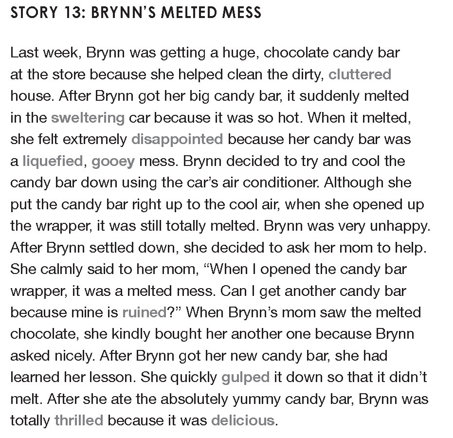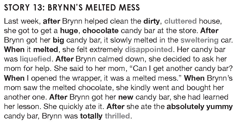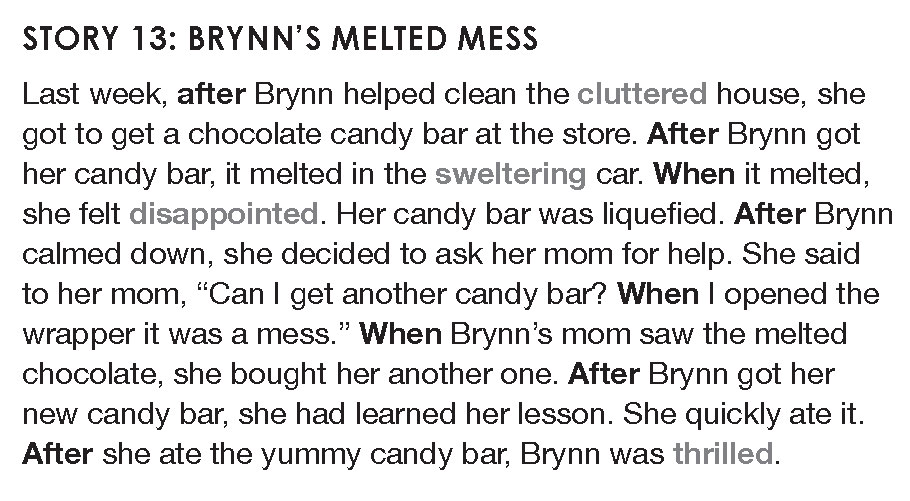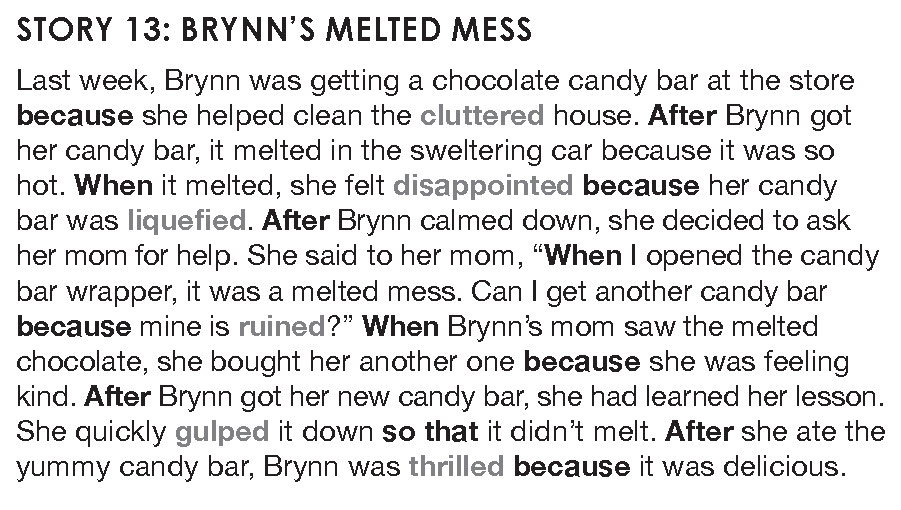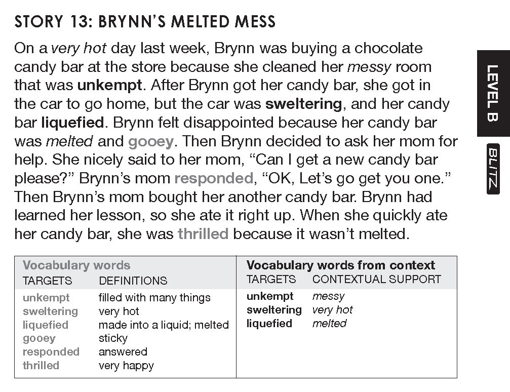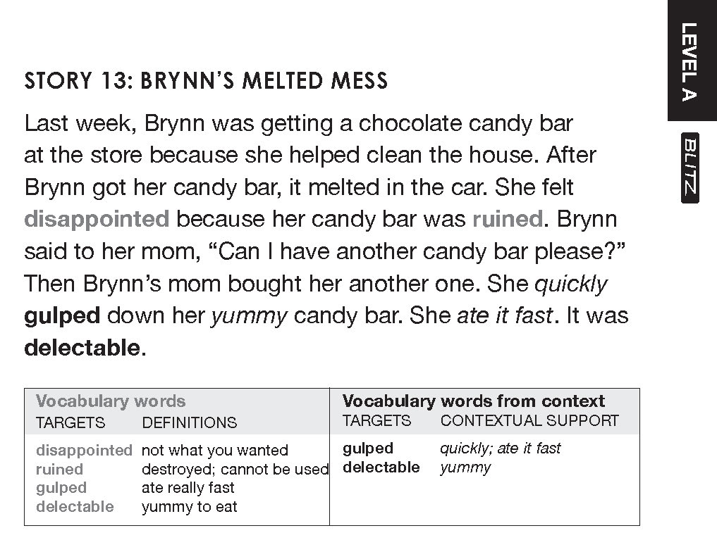 Students are ready to move on to Blitz stories (13-24) when additional stories are needed to continue intervention on the basic (Level A) and enhanced (Level B) story structures OR when students demonstrate proficiency in understanding and producing the Level B Classic stories.